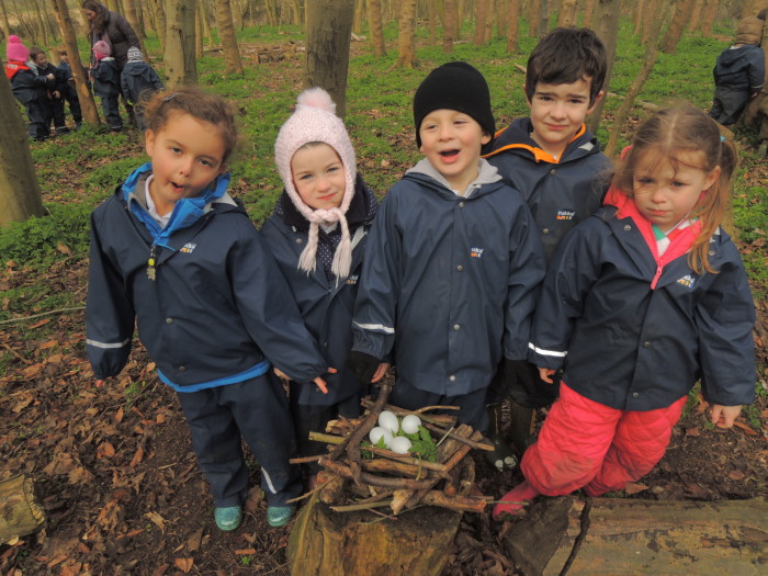 We worked in our groups to make a nest for a number of eggs. We could only use our thumb and finger or tweezers as beaks. We tried to build our nest safely off the ground and found materials to give it warmth!