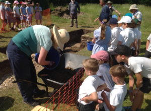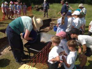 Class 3 enjoyed a fantastic visit to the excavation site of Clavering Castle on Thursday morning. We were given a tour of the site where 2 trenches had been dug out. The archaeologists showed us the different layers of soil and how these can tell us which years the ruins are from. Some of their findings go as far back as the 11th century! After exploring the site, we went back to the barn and washed some of the stones and bones which had been found in the dig. After some refreshments, we used clay to make our own pots and vases. A few members of the class were then interviewed by Saffron Walden Museum’s historical podcast! The children did our school proud especially with the heat. And some of the class are already looking forward to visiting the site again on Saturday with their families for the Castle open day.