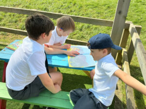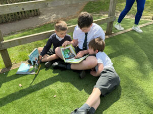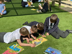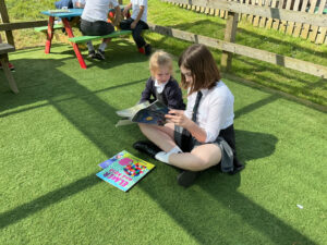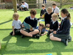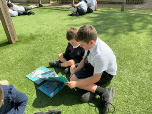 Year 6 and Reception enjoyed a special reading session in the outdoor classroom. It was wonderful to see how focussed all the children were and how rich their discussions were about the stories they were reading and hearing.